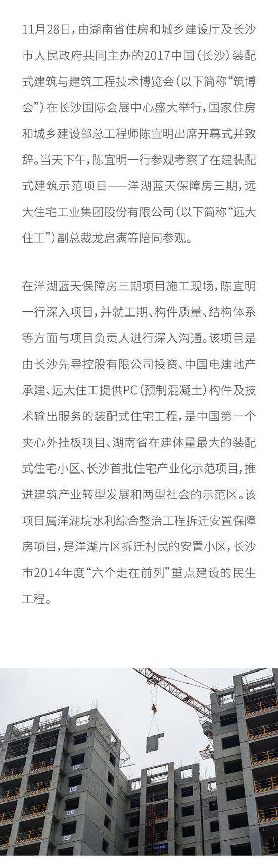 住建部总工陈宜明考察洋湖蓝天保障房 远大住工装配式建筑技术体系获肯定