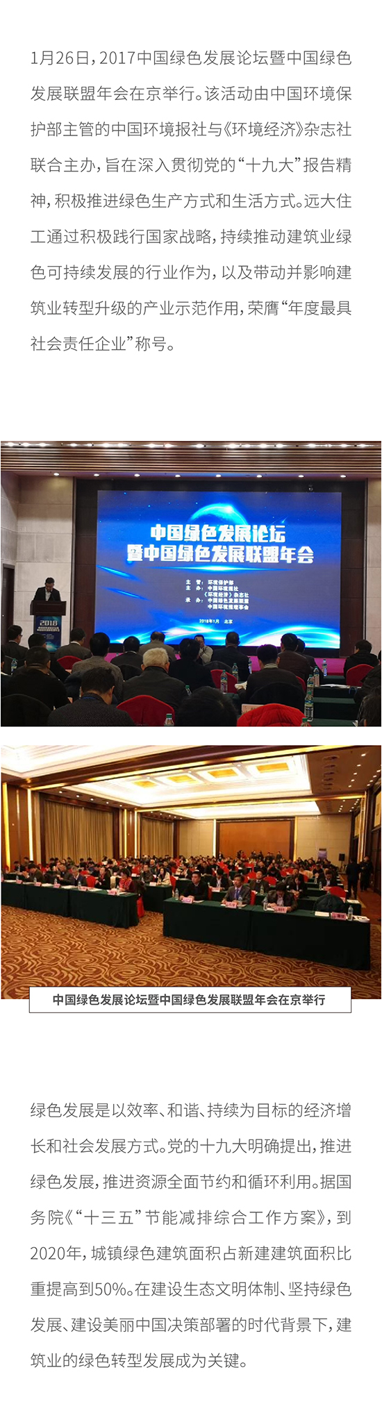 2017中国绿色发展论坛暨中国绿色发展联盟年会在京召开 远大住工荣膺“年度最具社会责任企业”