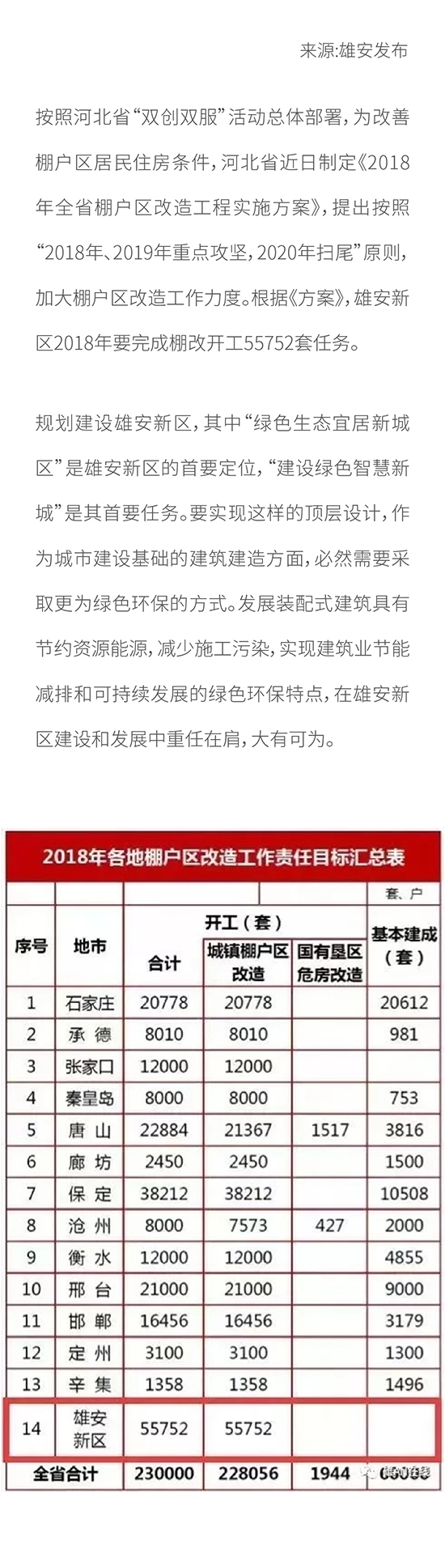 装配式建筑大有可为!雄安新区2018年要完成棚改开工55752套任务
