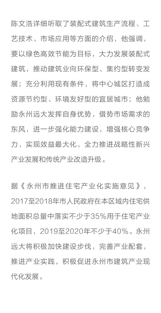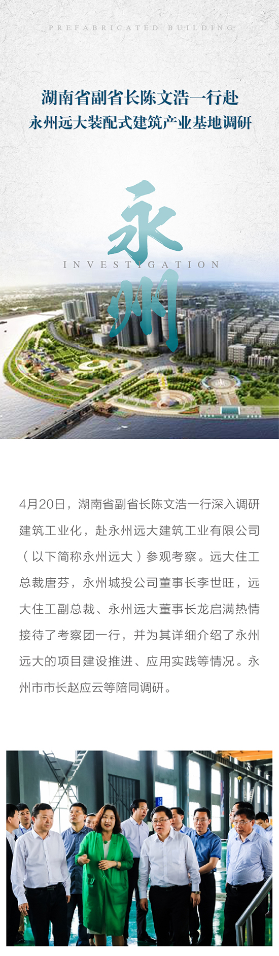 湖南省副省长陈文浩一行赴永州远大装配式建筑产业基地调研