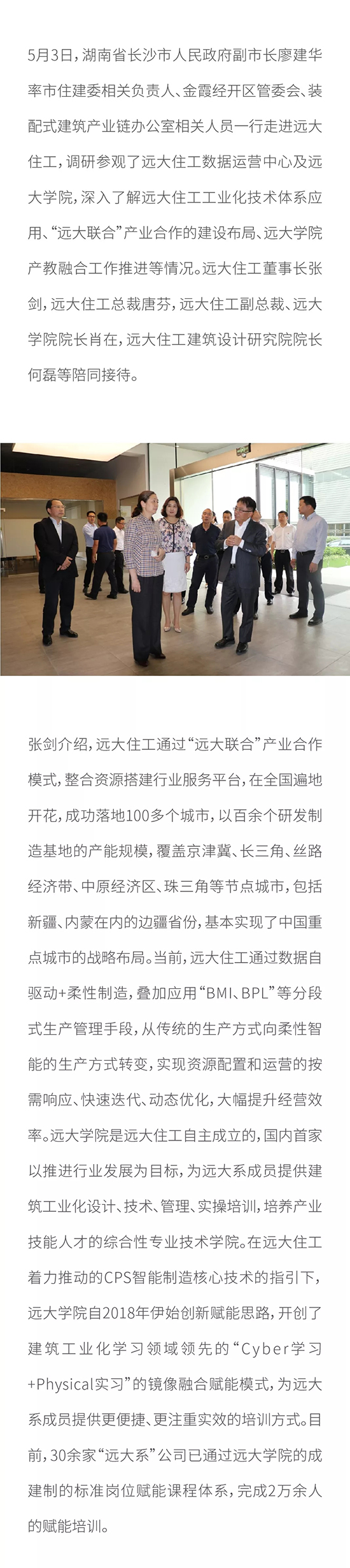 加快长沙市“两基地三中心”建设 副市长廖建华一行走进远大住工