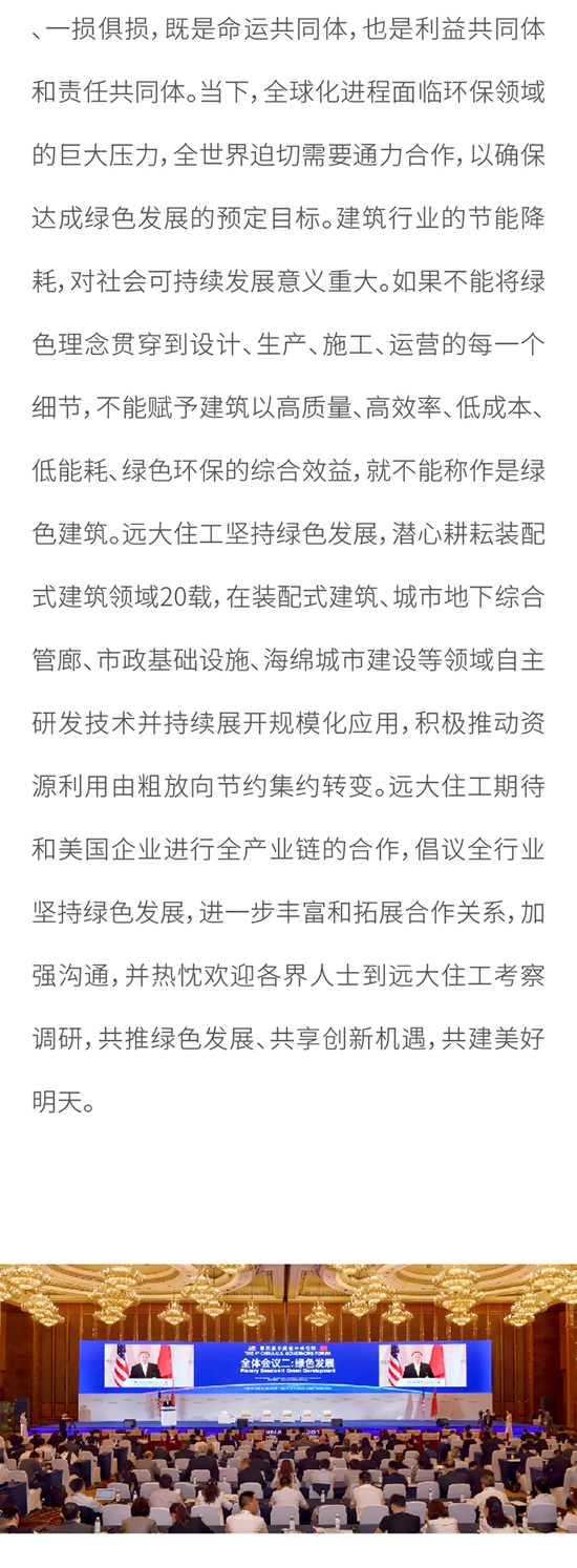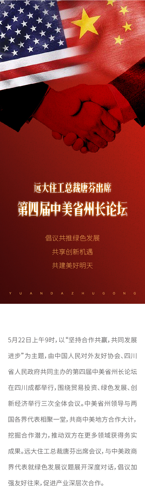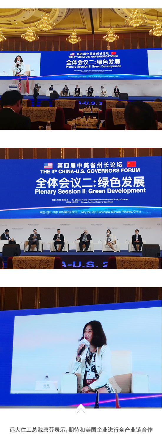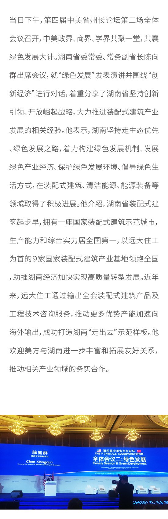 远大住工总裁唐芬出席第四届中美省州长论坛 倡议共推绿色发展 共享创新机遇 共建美好明天
