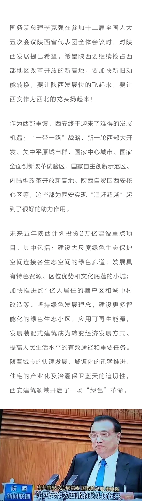 国务院总理李克强:2万亿支持陕西建设!装配式建筑助力让西安龙头扬起来