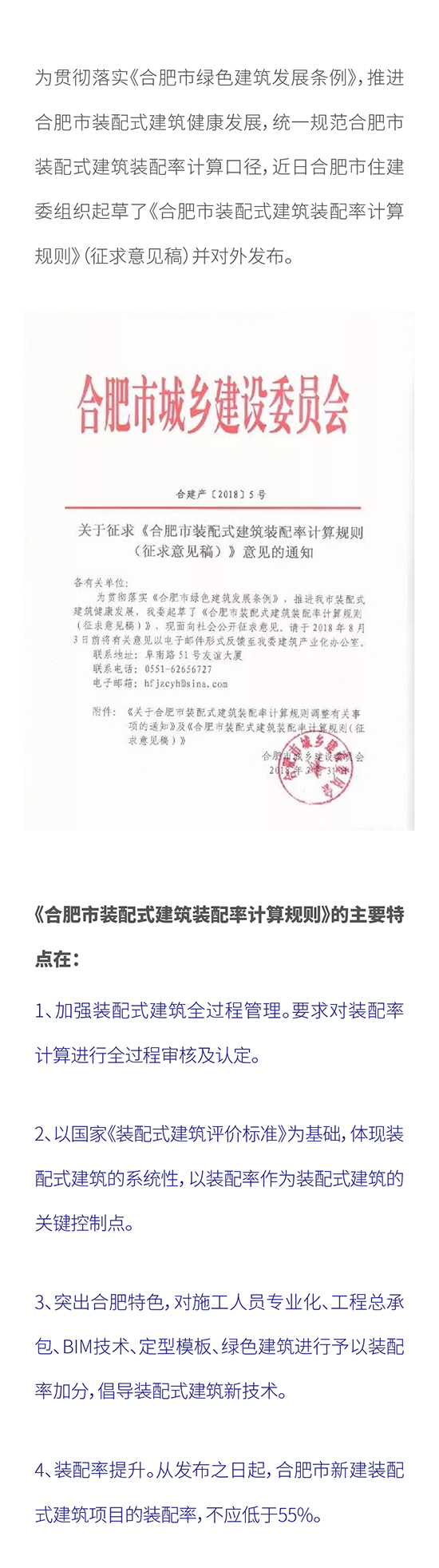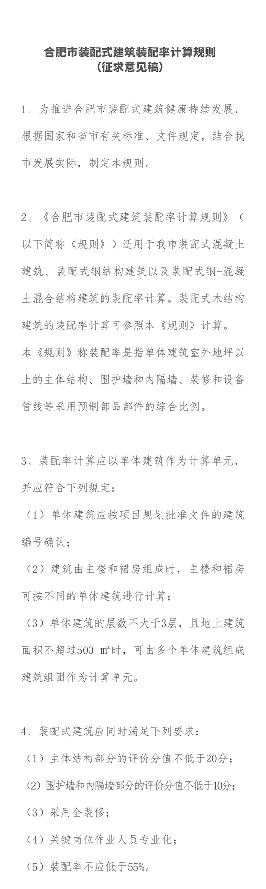 最新,《合肥市装配式建筑装配率计算规则(征求意见稿)》发布