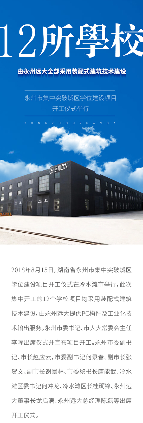 12所学校由永州远大全部采用装配式建筑技术建设 永州市集中突破城区学位建设项目开工仪式举行
