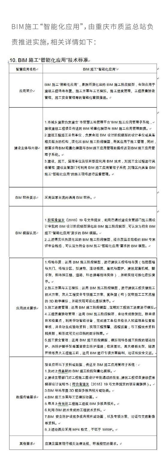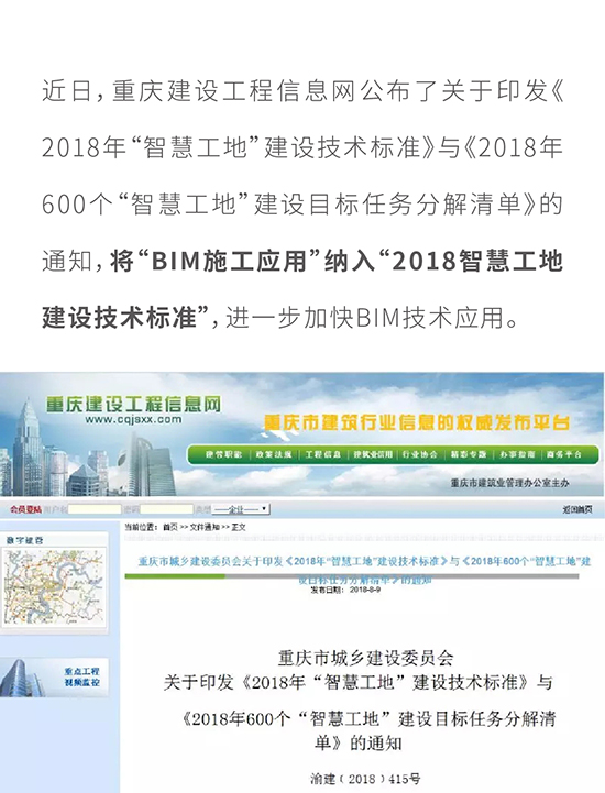 重庆市将“BIM施工应用”纳入 “2018智慧工地建设技术标准”!