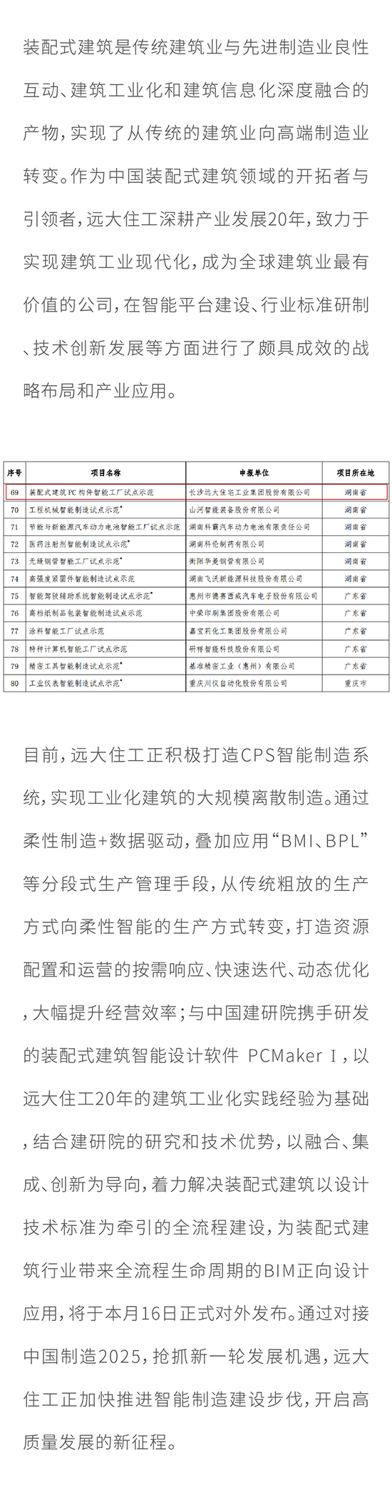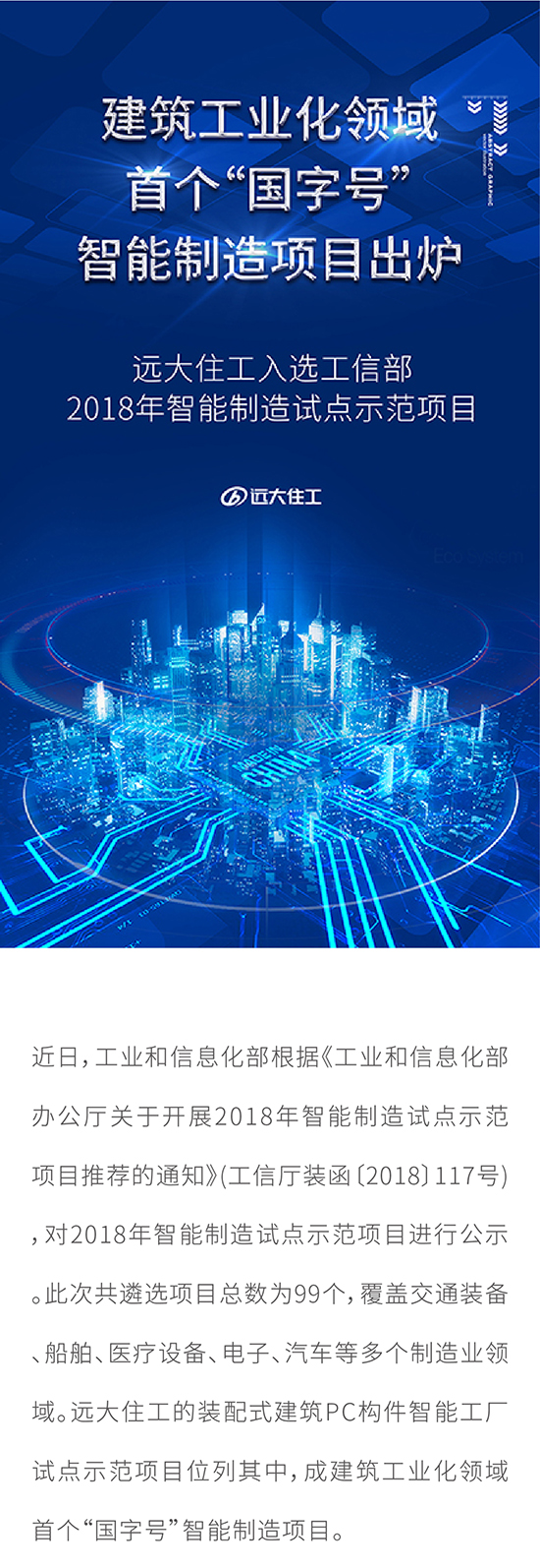 建筑工业化领域首个“国字号”智能制造项目出炉 远大住工入选工信部2018年智能制造试点示范项目