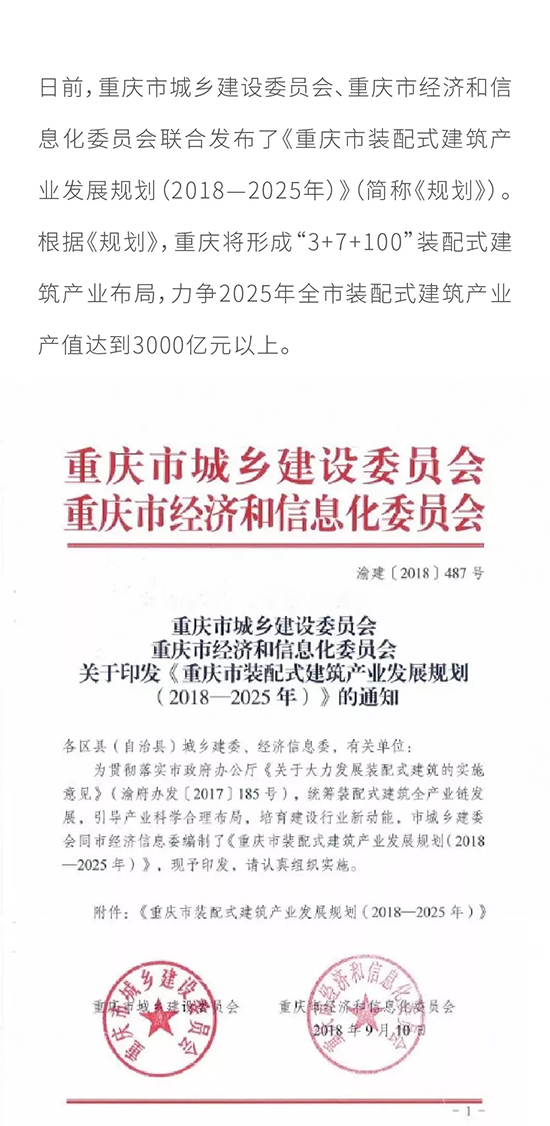 最新|重庆市出台装配式建筑产业发展规划(2018—2025年),力争2025年装配式建筑产业产值达到3000亿元以上