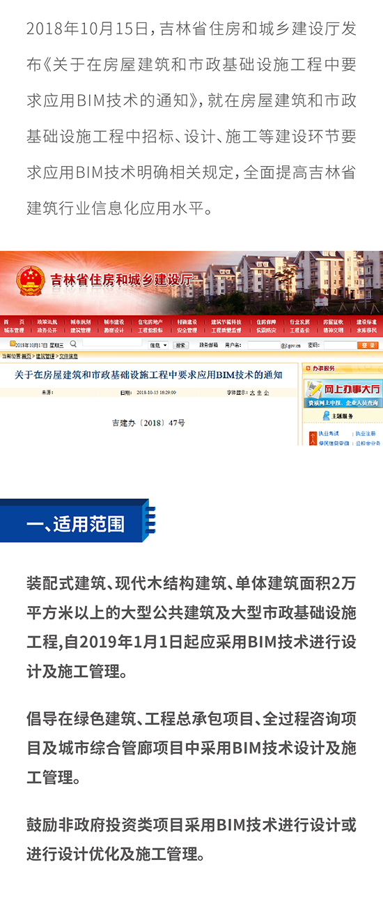 最新!吉林省住建厅出台 《关于在房屋建筑和市政基础设施工程中要求应用BIM技术的通知》
