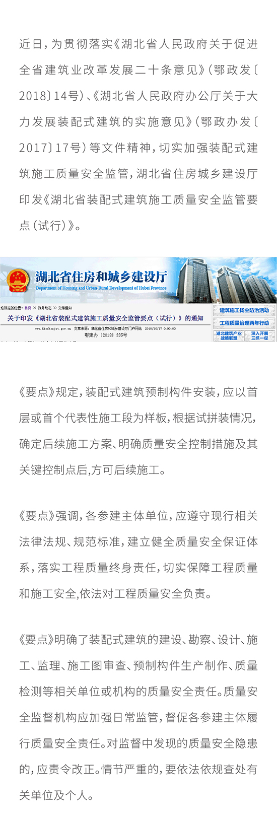 最新:《湖北省装配式建筑施工质量安全监管要点(试行)》出台