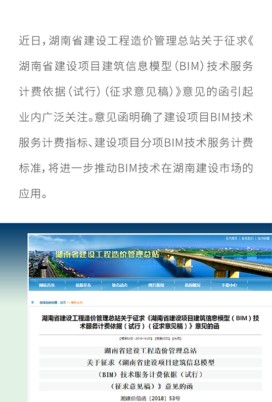 湖南省发布关于征求《湖南省建设项目建筑信息模型(BIM)技术服务计费依据(试行)(征求意见稿)》意见的函