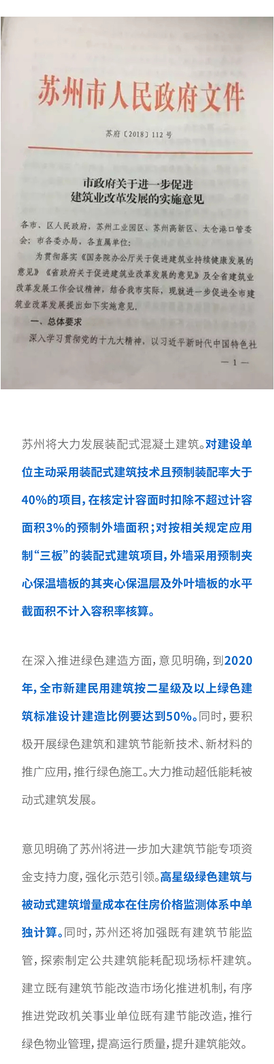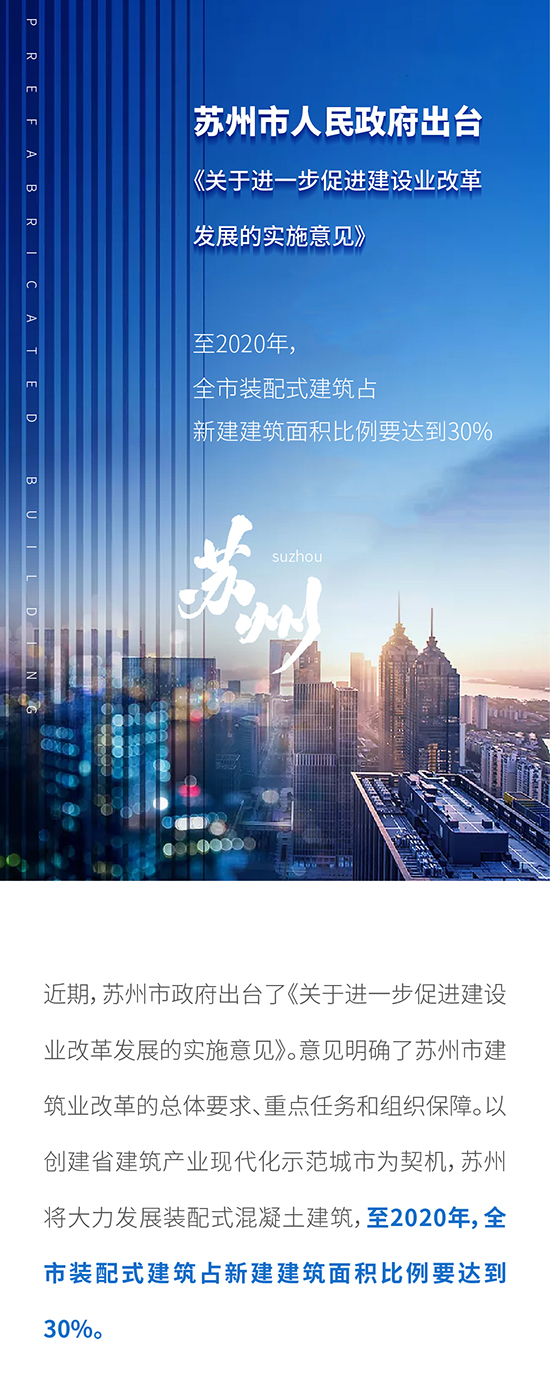 苏州市人民政府出台《关于进一步促进建设业改革发展的实施意见》: 至2020年,全市装配式建筑占新建建筑面积比例要达到30%