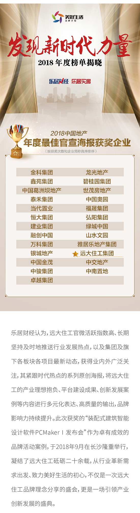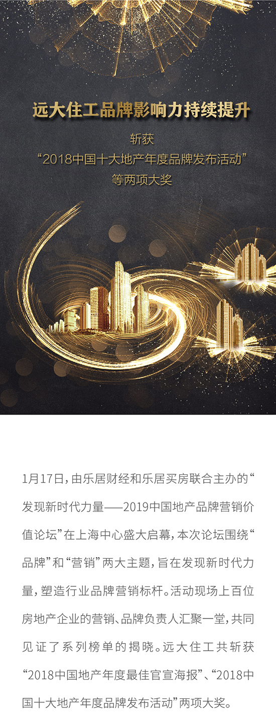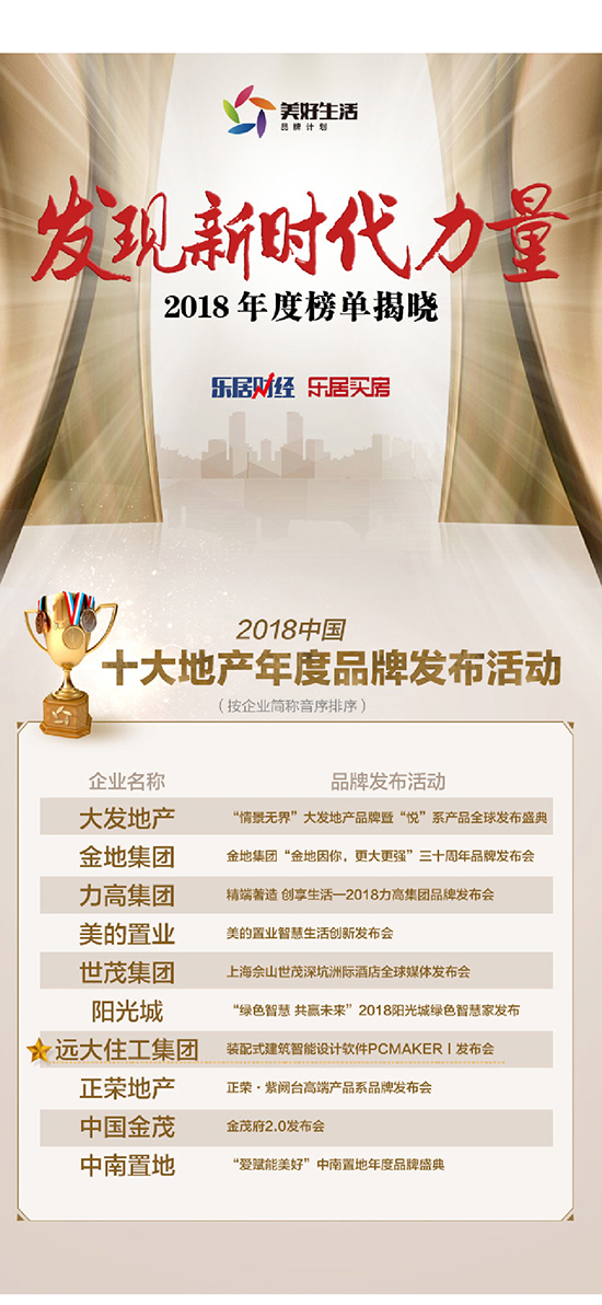 远大住工品牌影响力持续提升 斩获“2018中国十大地产年度品牌发布活动”等两项大奖