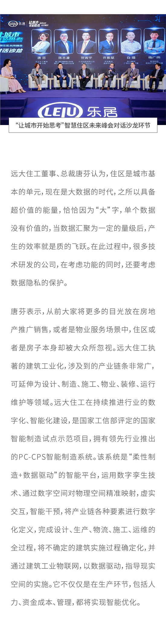 远大住工董事、总裁唐芬受邀出席智慧住区未来峰会: 智造可持续的绿色建筑为智慧住区赋能