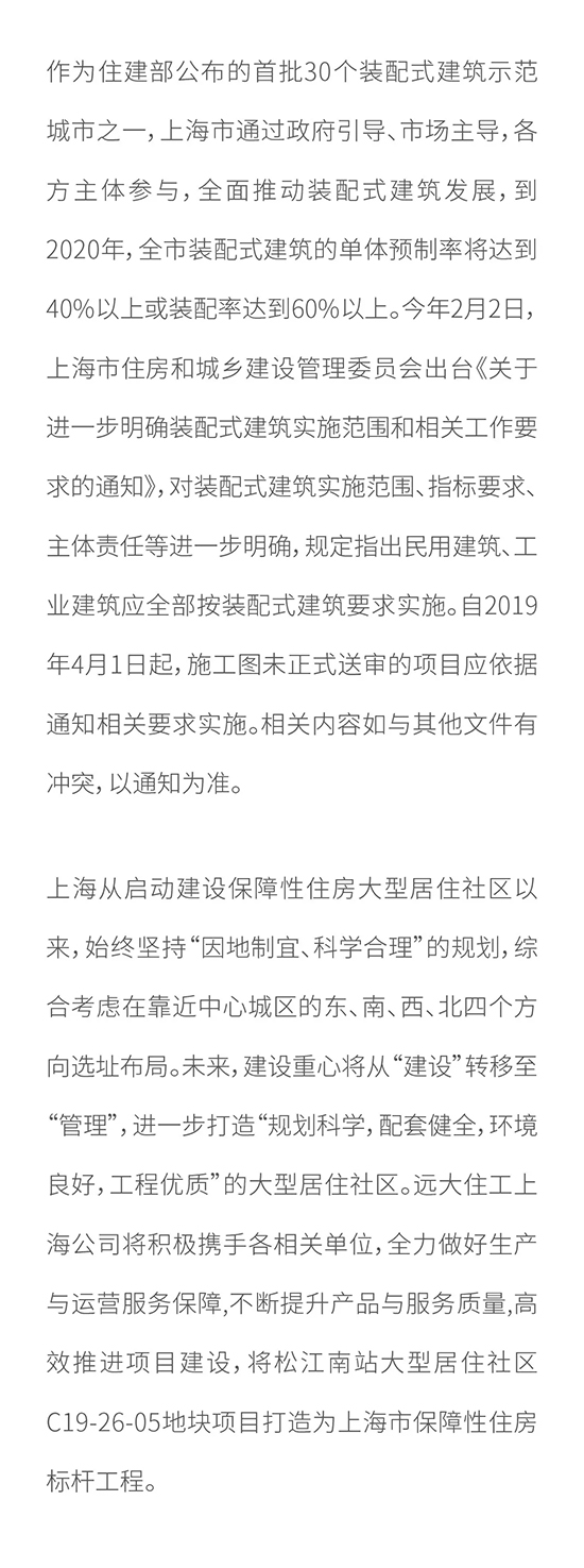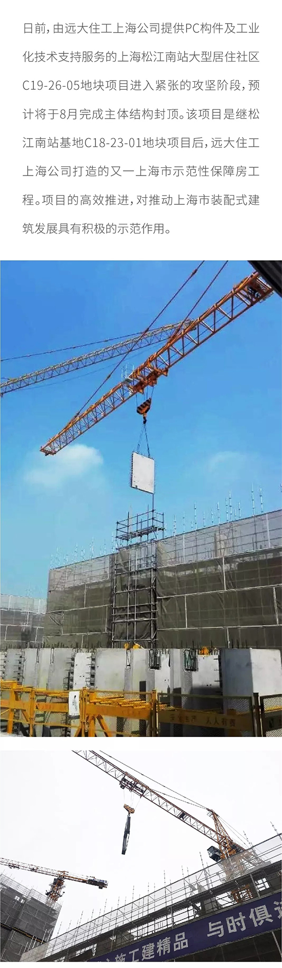 远大住工上海公司倾力打造又一示范性保障房工程 松江南站大型居住社区C19-26-05地块项目将于8月完成主体结构封顶