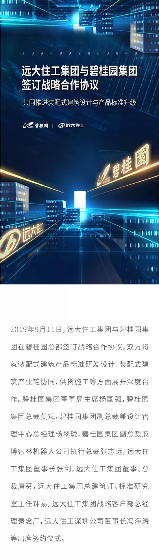 远大住工集团与碧桂园集团签订战略合作协议 共同推进装配式建筑设计与产品标准升级