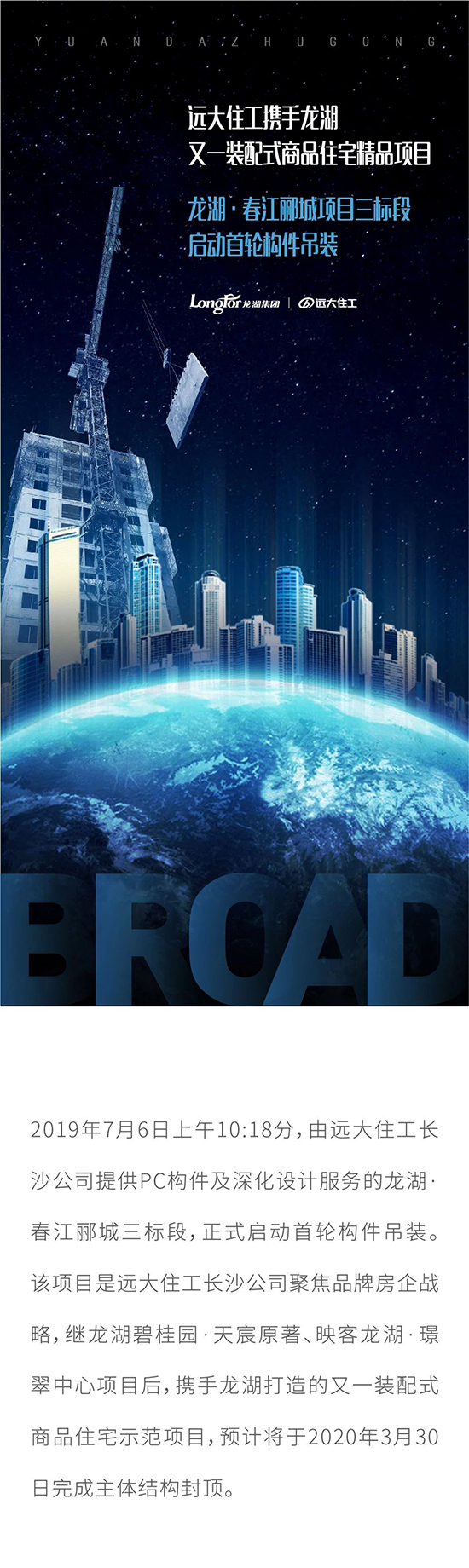 远大住工携手龙湖又一装配式商品住宅精品项目 龙湖·春江郦城项目三标段启动首轮构件吊装