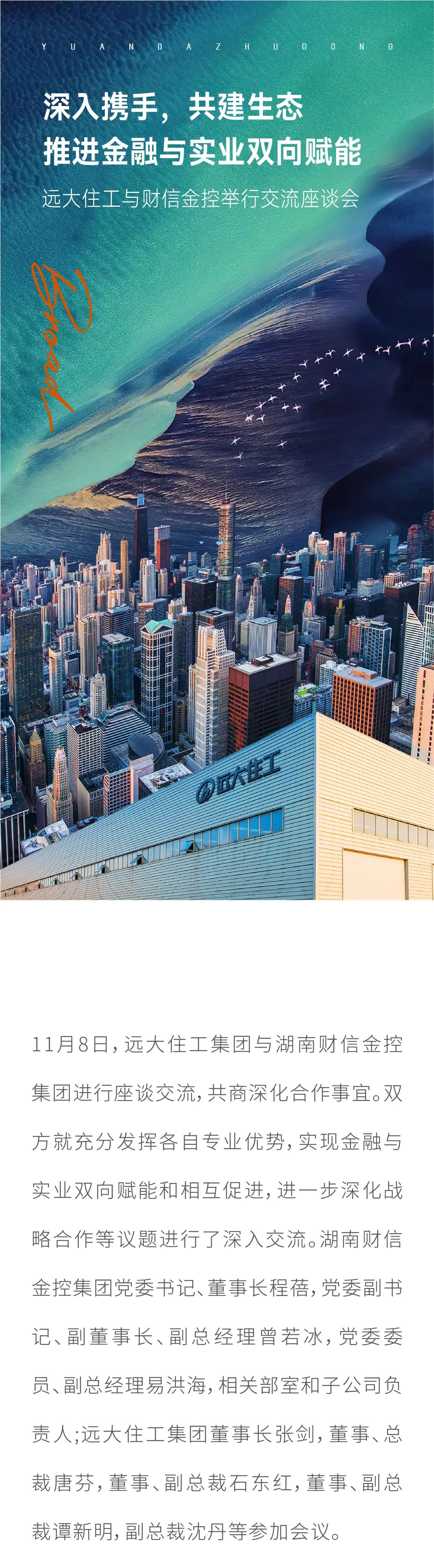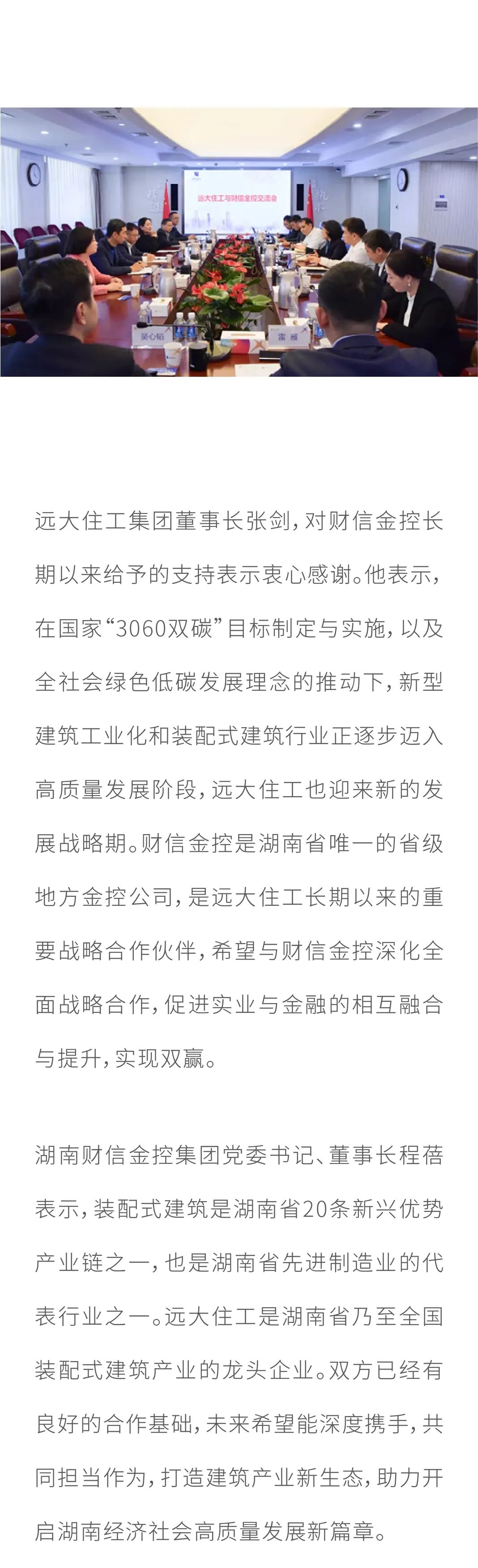 深入携手,共建生态,推进金融与实业双向赋能 远大住工与财信金控举行交流座谈会