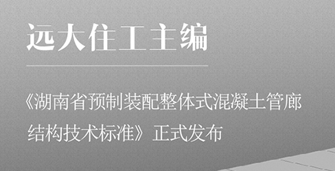近日,由远大住工与湖南大学主编的湖南省工程建设推荐性地方标准《湖南省预制装配整体式混凝土综合管廊结构技术标准》,由湖南省住房和城乡建设厅批准发布,编号为DBJ43/T 329—2017。自2018年3月1日起在全省范围内实施。