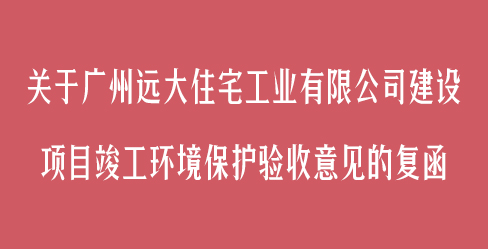 关于广州远大住宅工业有限公司建设项目竣工环境保护验收意见的复函